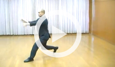 2. 三才式推掌・・・三才式の姿勢より、形意拳独特の歩法(ステップ)を用いて、前方へ向け掌打を打ちます。全ての技法の基本。